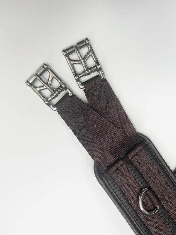 With no elastic, this girth provides a firm, stable fit — ideal for riders who prefer consistent tension and minimal movement. Finished with strong stainless steel roller buckles for easy adjustment and long-lasting use.
