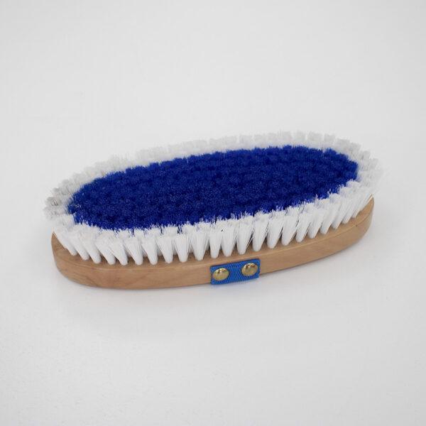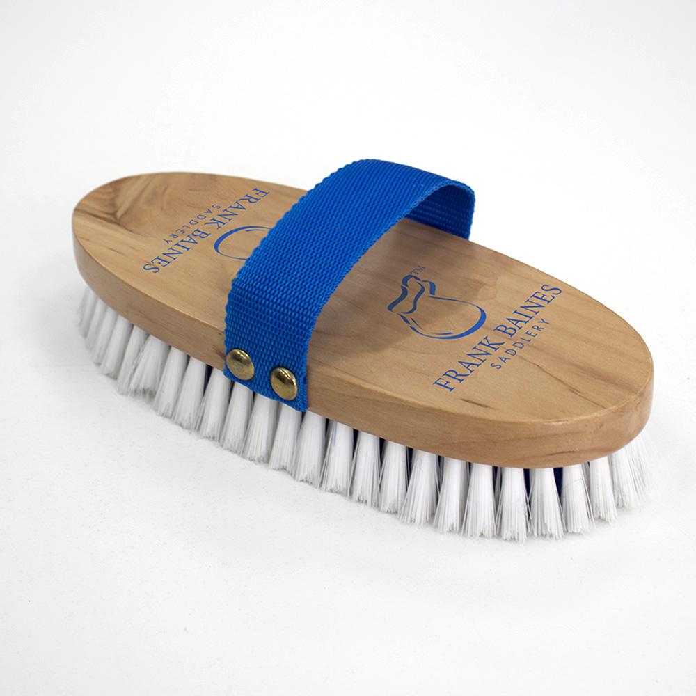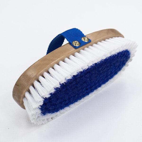 A high quality wooden backed Soft Touch Horse Body Brush with soft nylon bristles. Removes fine dust and detritus from your horse’s coat and face leaving a beautiful shine! Large brush features a soft hold, wide webbing strap, making it easy to hold.